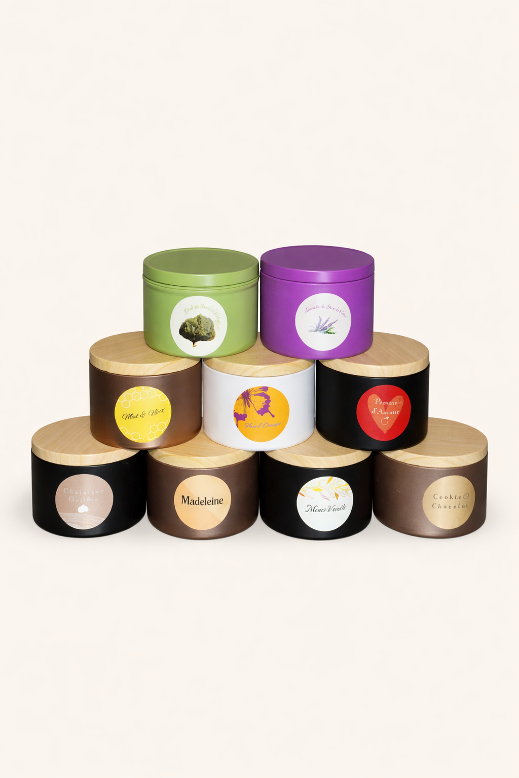 | Parfums | Cade, Lavandin, Miel noix, Fleur d’oranger, Pomme d’amour, Châtaigne grillée, Madeleine, Cookie chocolat, Monoï vanillé |